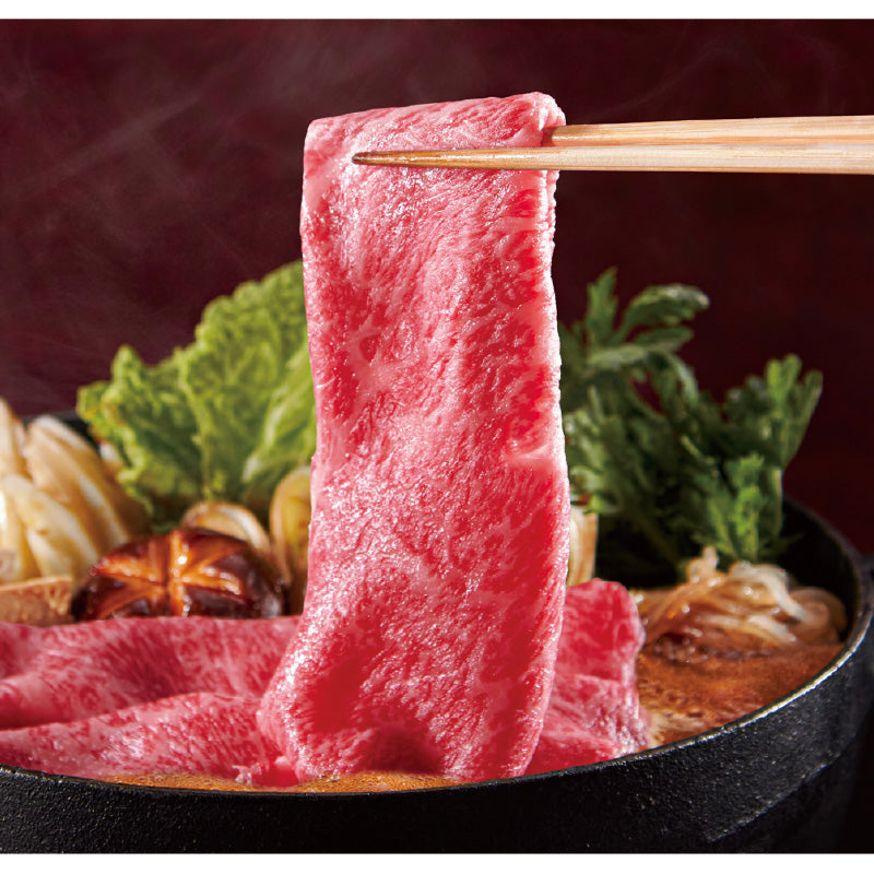 一頭一頭丹念に育てあげた黒毛和牛の旨味が濃厚で霜降りもある肩ロース肉をすき焼き用に仕上げました。