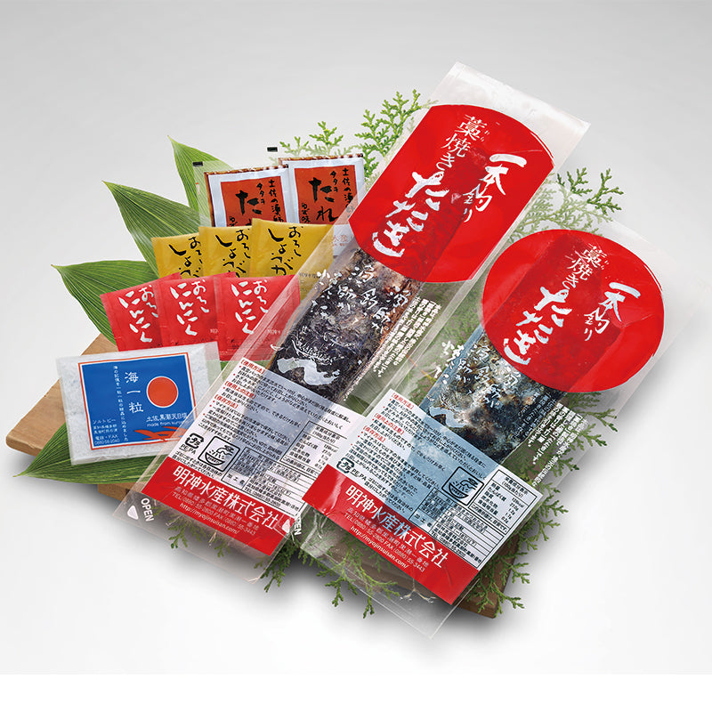 • 鰹たたき×2(約500g、北西太平洋海域漁獲原料)、タレ20ml×2、天日塩10g、おろしにんにく5g×3、おろししょうが8g×3