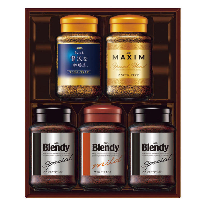 ●内容量:ちょっと贅沢な珈琲店インスタントコーヒー(ブラジルブレンド65g×1)、ブレンディインスタントコーヒー(スペシャルテイスト70g×2、マイルドテイスト70g×1)、マキシムインスタントコーヒー(スペシャルブレンド65g×1)